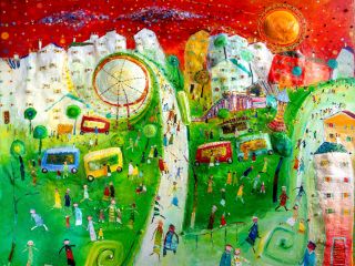 La fête foraine embrassée par un ciel embrasé 130 x 162 cm (2023).jpg