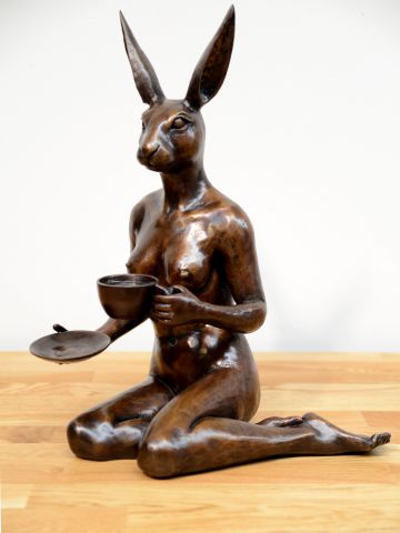 She looked into his eyes as she drank her skim cap 29 x 28 x 49cm.jpg