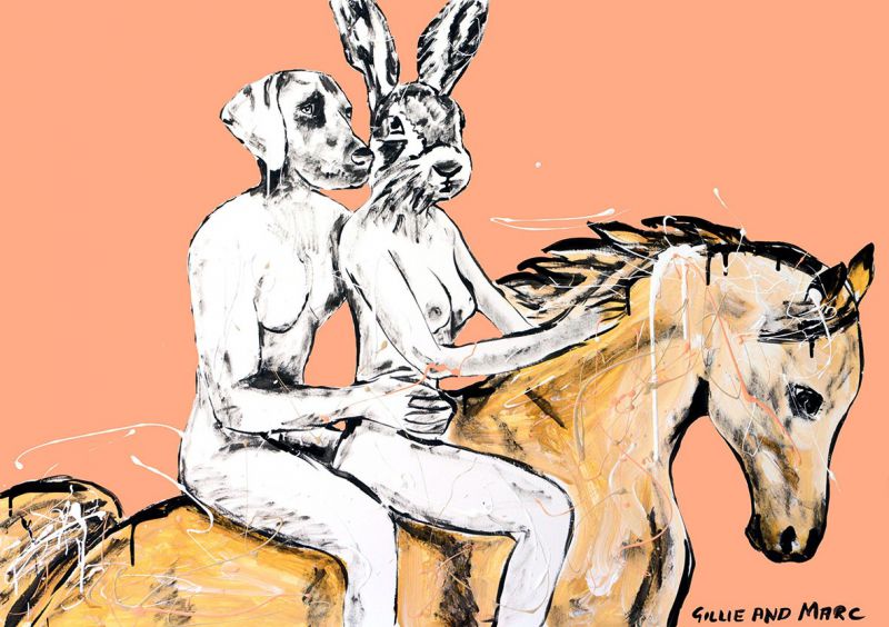 He loved riding bare back being bare naked 80 x 60cm mixed media on card.jpg