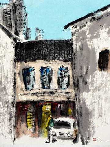 waiting 68x68cm chinese ink and colors on paper 2015.jpg