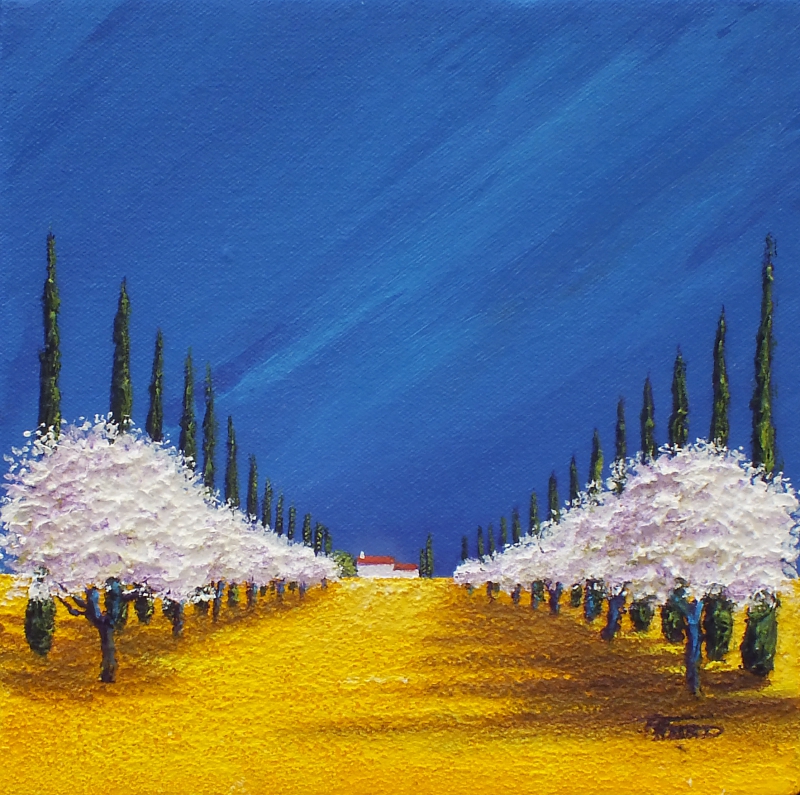 Ronnie Ford Pommiers en Fleurs study, 20x20cm mixed media on canvas framed.jpg