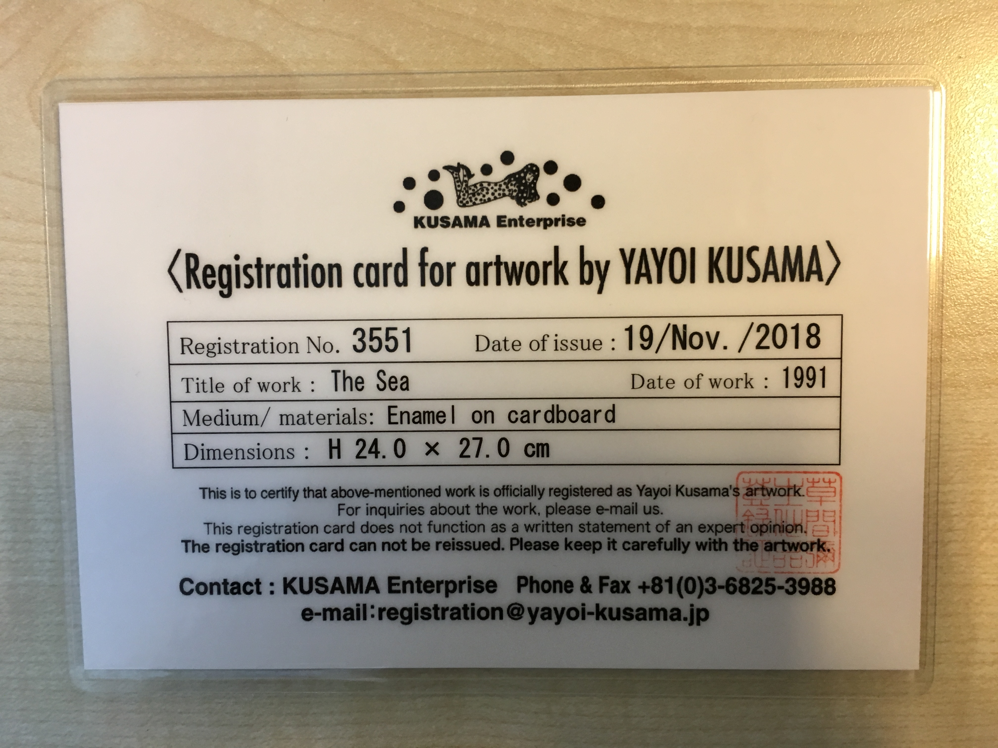 | Yayoi Kusama The Sea 24h x 27cm enamel on cardboard registration card .jpg | 2018-12-11 17:15 | 1.8M | ||